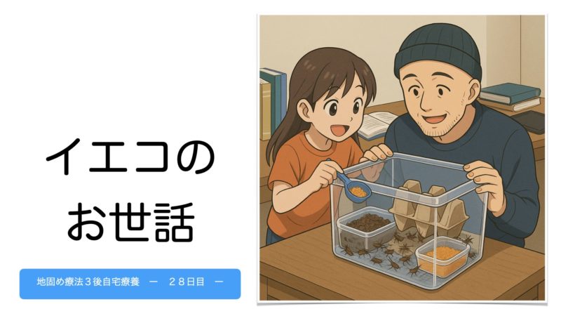 白血病を患ってから、自宅に帰っている間も好中球数が低いことが多く、基本的に生き物の世話を娘に任せています。