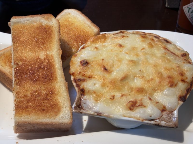 お昼は近くの喫茶店。子どもたちは「喫茶店のナポリタン」を堪能していました。私は帆立とチキンのグラタン。