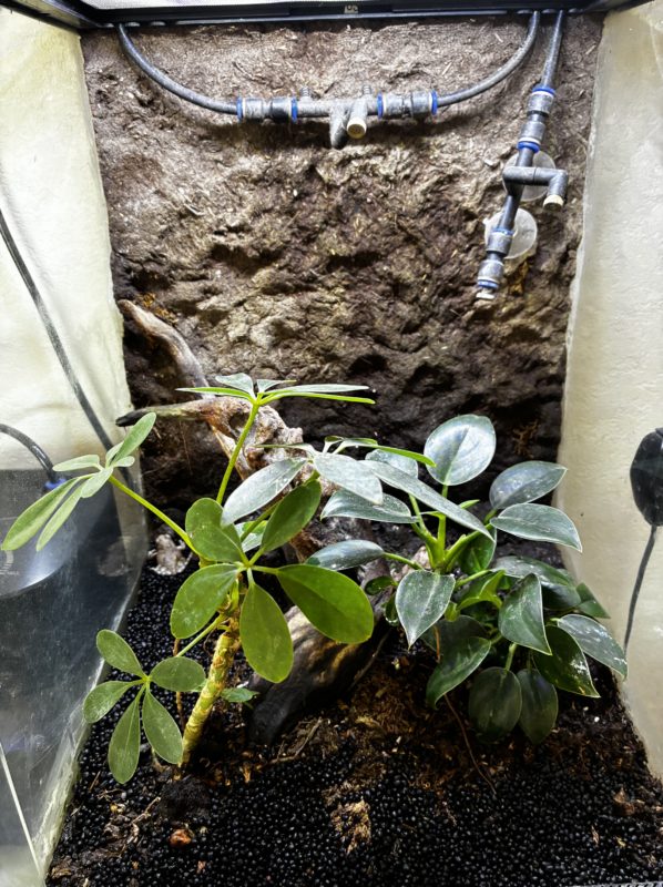 ライトと好きな距離を選べるように、そして樹上性ということもあって流木を入れていますが、流木も一度取り出してごしごし洗います。