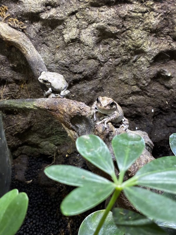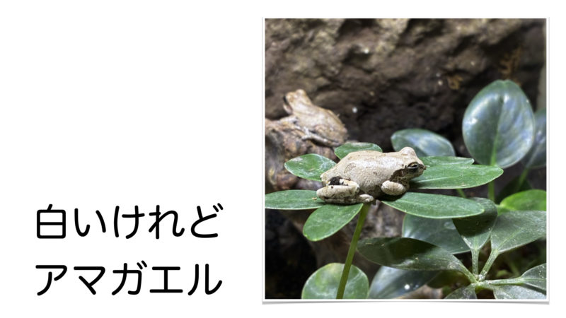 で、今健在なのはアマガエルちゃんたちです。アマガエルのケースには、実はやもりも1匹住んでいます。アマガエルちゃんも、親子みたいなオスメスです。やっぱり小さい方が最近弱ってきている感じで心配しています。壁にへばりつくもよく落ちるし、なんだかよぼよぼしている感じだし。何より餌のこおろぎを捕まえるのが究極に下手すぎます。